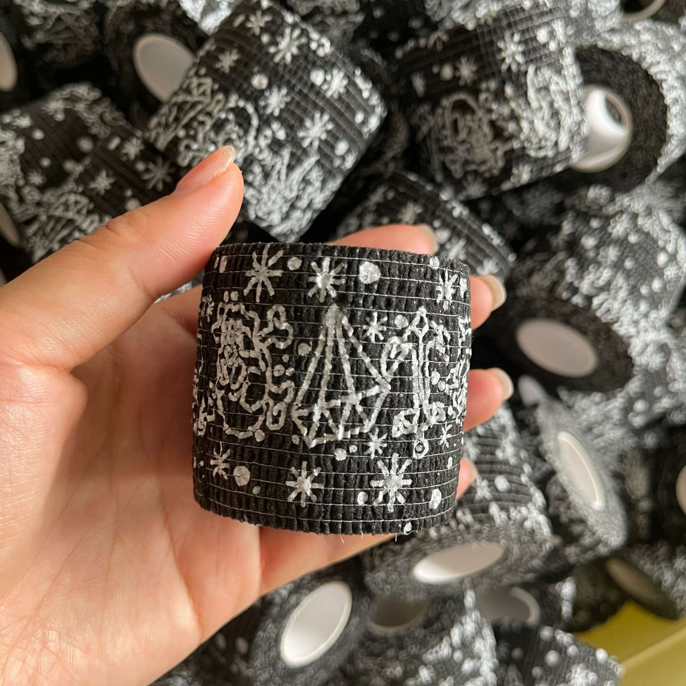 نوارهای بسته بندی دستگاه تاتو باند چسبنده خود را در اطراف چنگال دستگاه تاتو ، جایگزین پوشش گرفتن دستگاه تاتو سنتی و ایفای نقش های مختلف در کاربرد خال کوبی و مراقبت.